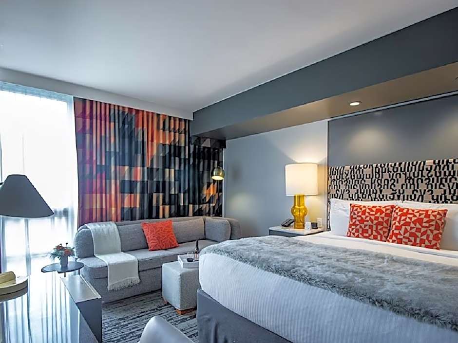 1 King Bed NSMK Sofabed Mini Fridge Floor To Ceiling Windows Walk In Shower Keurig Coffee Maker is 258 square feet and includes a king-size bed 150-183 width plus a sofa bed.